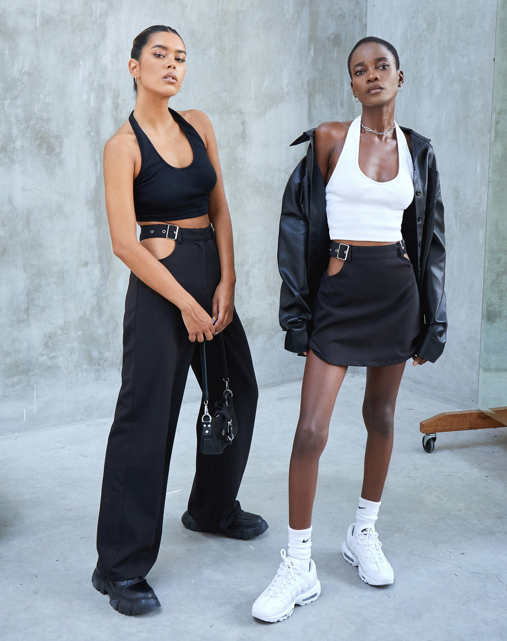 Minigonna Aneli in soffice maglia di pelle di mucca bianca e nera