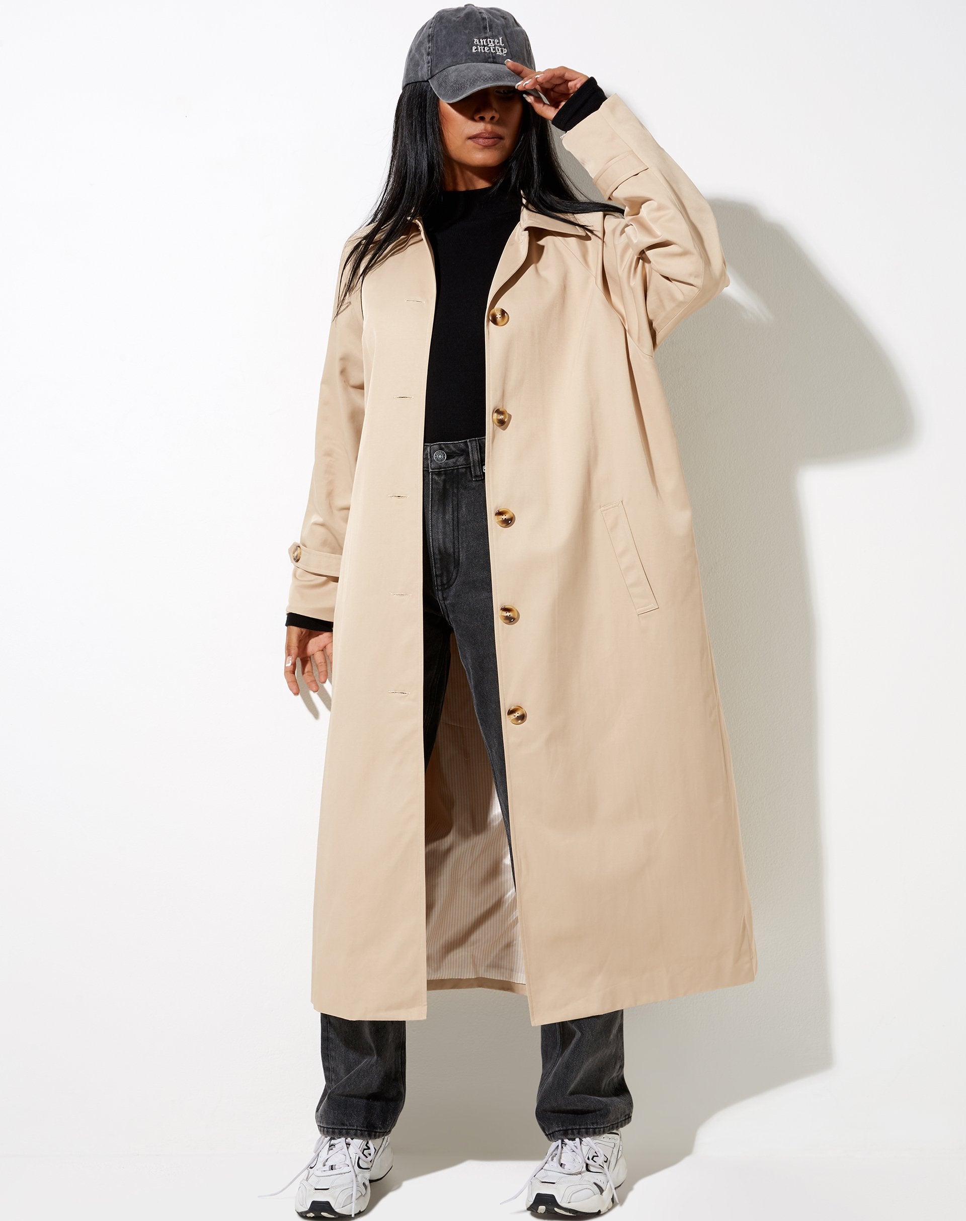 Aggiornate il vostro abbigliamento esterno con il trench Assa. trench. Caratterizzato da vestibilità lunga, abbottonatura frontale, colletto e tasche in beige con fodera a righe. Da indossare su qualsiasi abito per una finitura elegante.