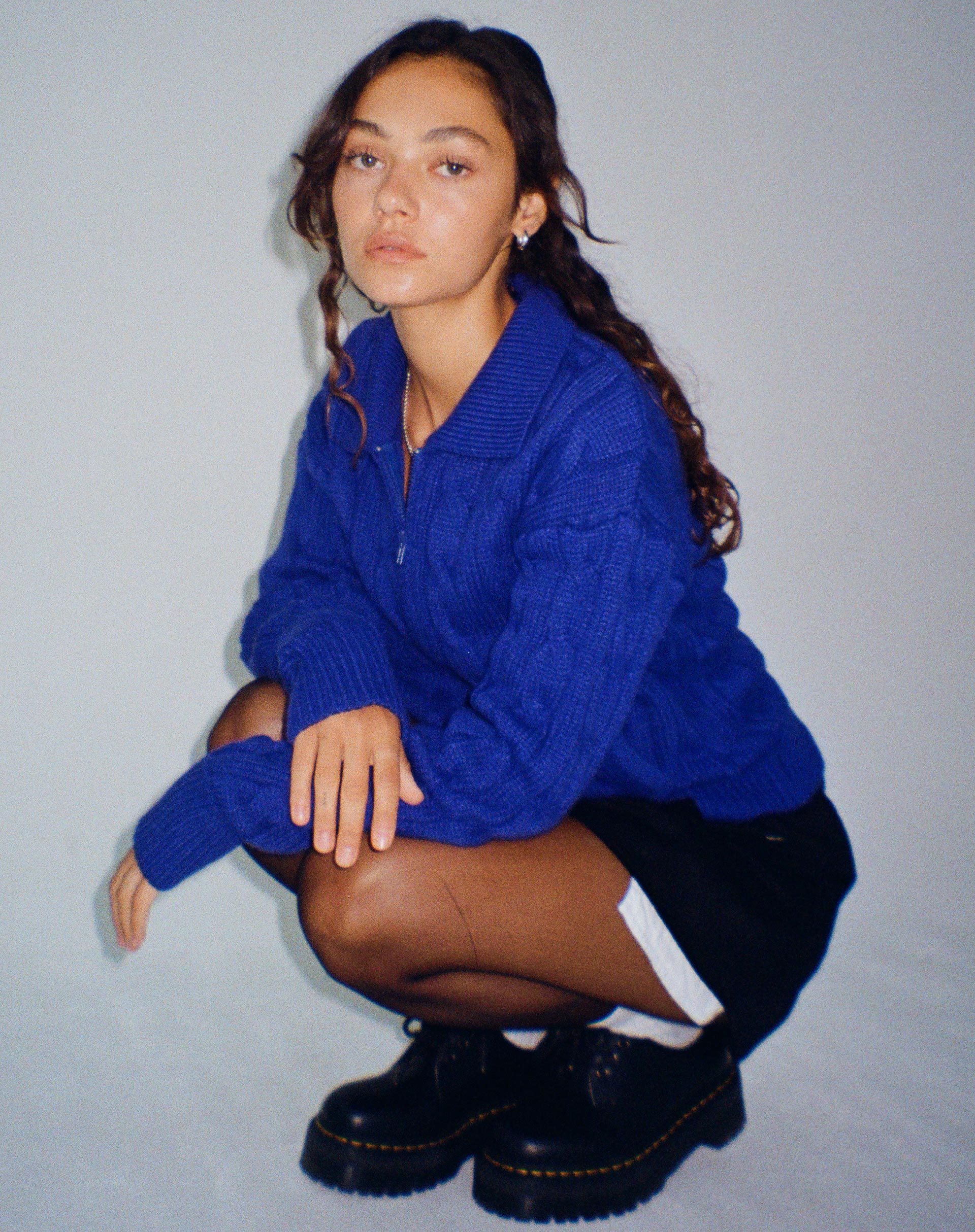 Rimanete al caldo con il maglione Atasya maglione. In colore cobalto, questo maglione in maglia presenta maniche lunghe e chiusura a zip. Ci piace abbinarlo alla nostra gonna Blythe.