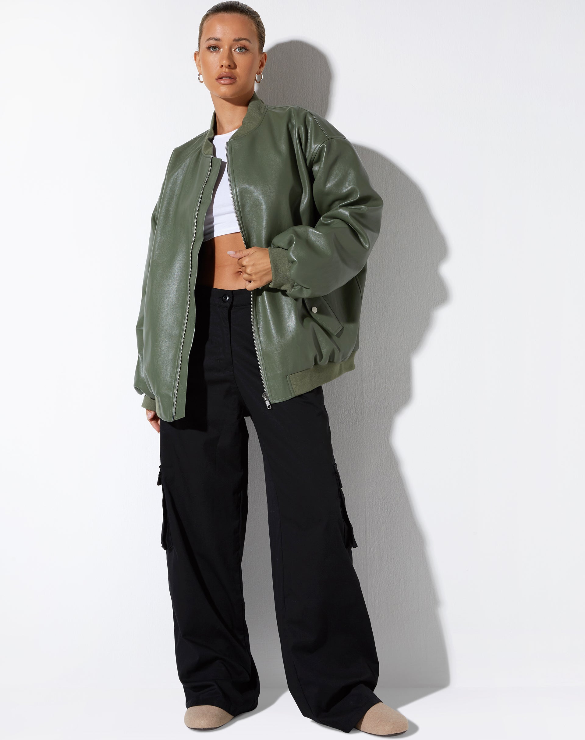 Aggiornate il vostro abbigliamento esterno con la nostra giacca Benta giacca. Caratterizzata da una vestibilità oversize, chiusura frontale con zip e tasche, è di colore verde oliva. Indossatela sopra un crop bianco di base e abbinatela ai nostri pantaloni cargo Jita in nero. pantaloni cargo Jita in nero.