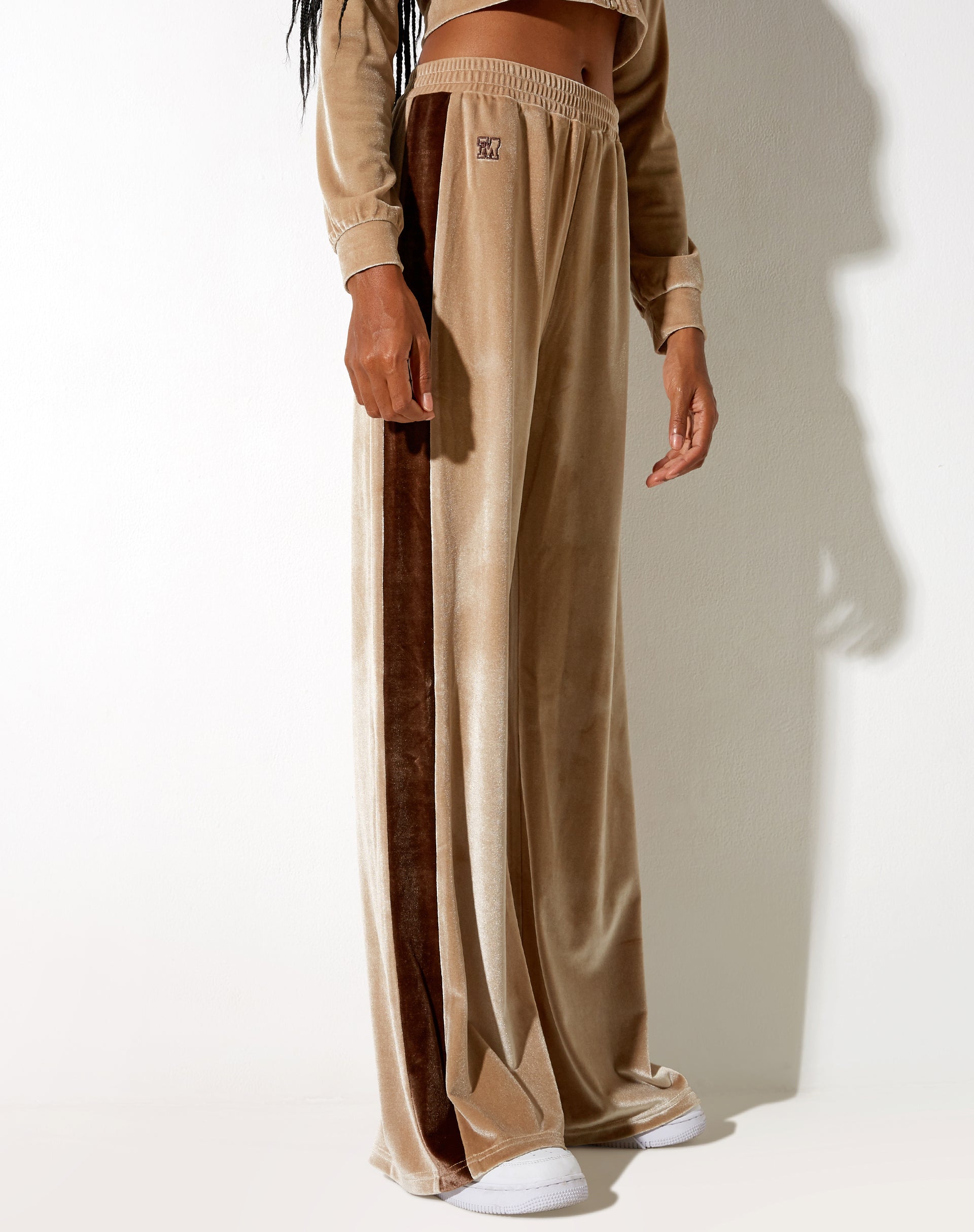 Pantaloni a gamba larga Bintan in Velour Champagne