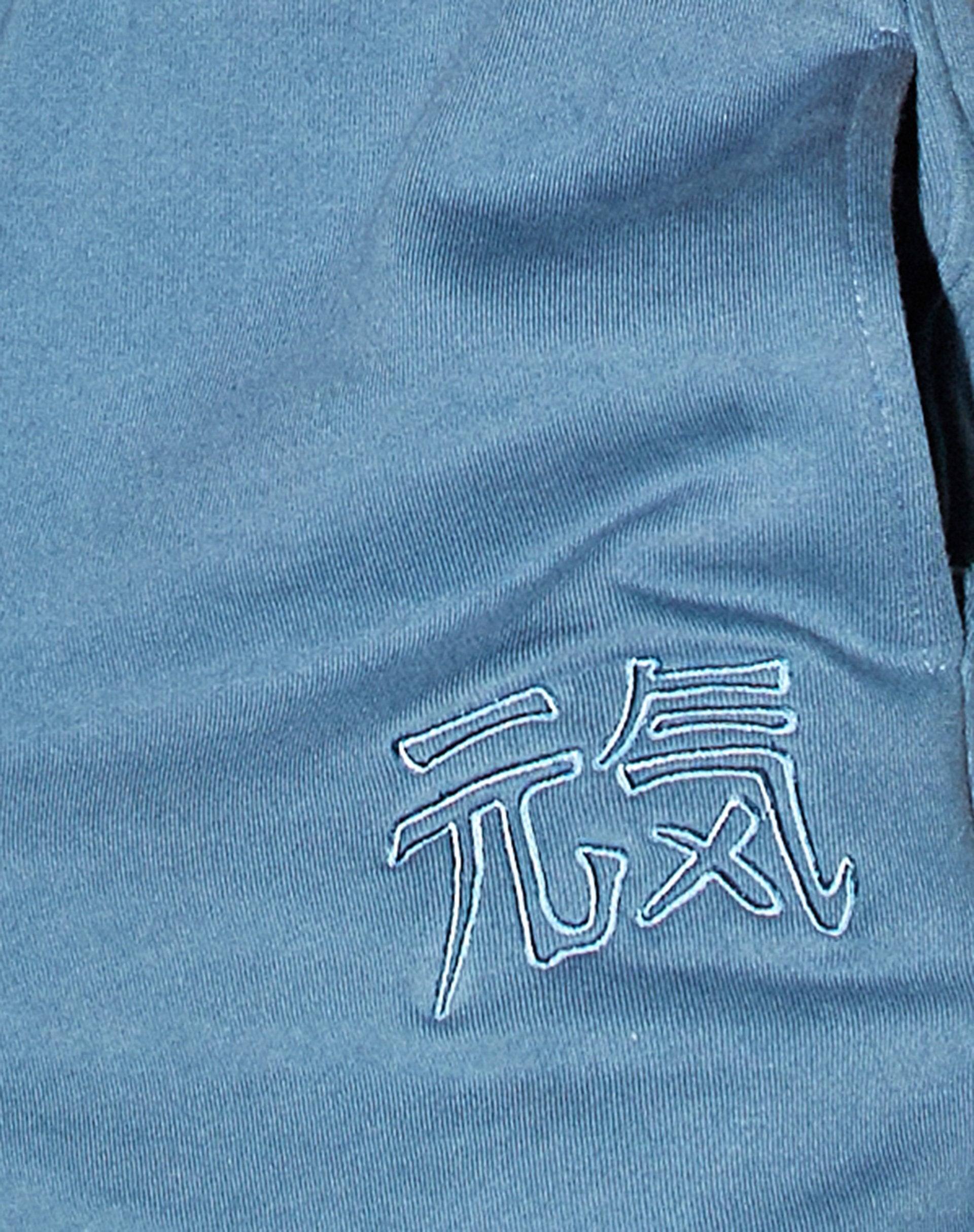 Bungee Jogger in blu minerale con stampa giapponese "Spirit".