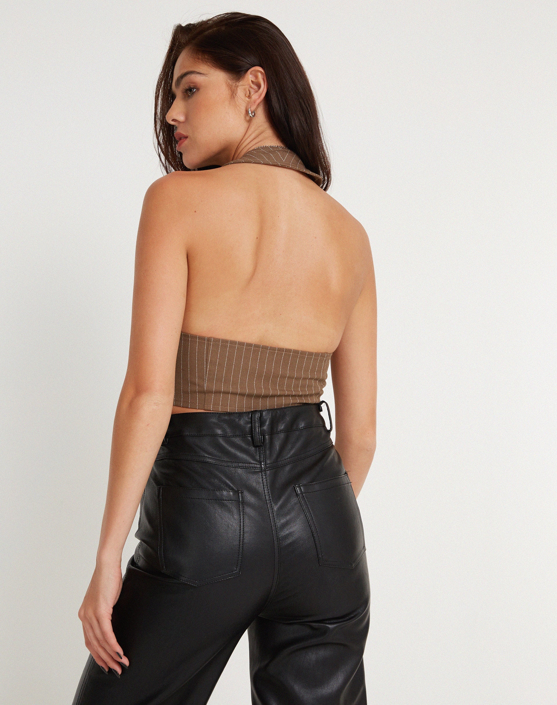 Canisba Crop Top in gessato marrone