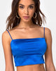 Scatenatevi! Festeggiate fino a mezzanotte con il Cinia Crop Top in Satin Sapphire Spandex. Caratterizzato da scollo quadrato, spalline e vestibilità crop bodycon. Da abbinare a leggings aderenti in pelle nera e tacchi a spillo in pelle nera!