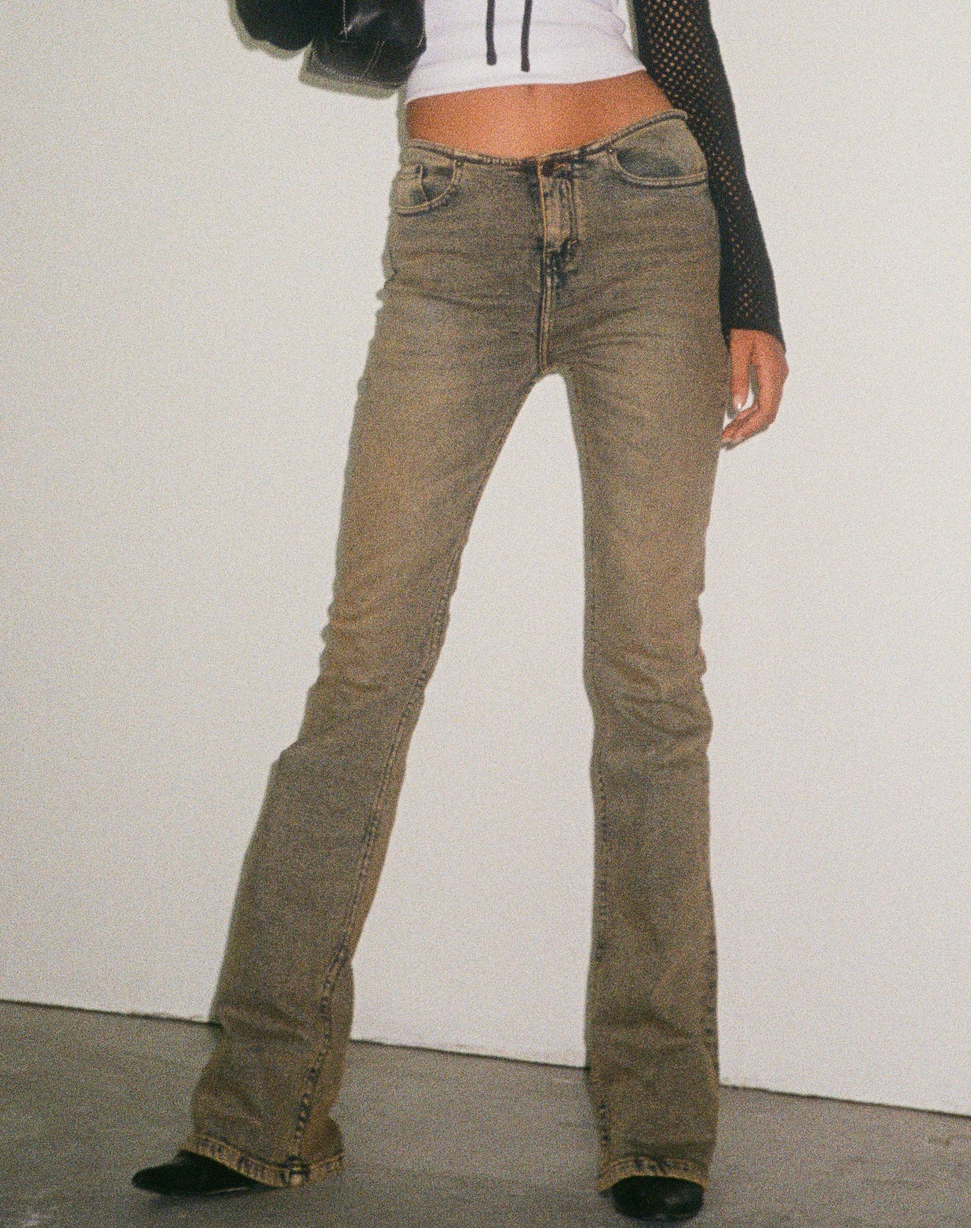 Aggiornate il vostro denim con questi jeans a vita bassa jeans a vita bassa. In blu sabbia, presentano una gamba svasata con tasche laterali. Da abbinare a una t-shirt bianca di base e al nostro Nocta Crop per una vestibilità ottimale".