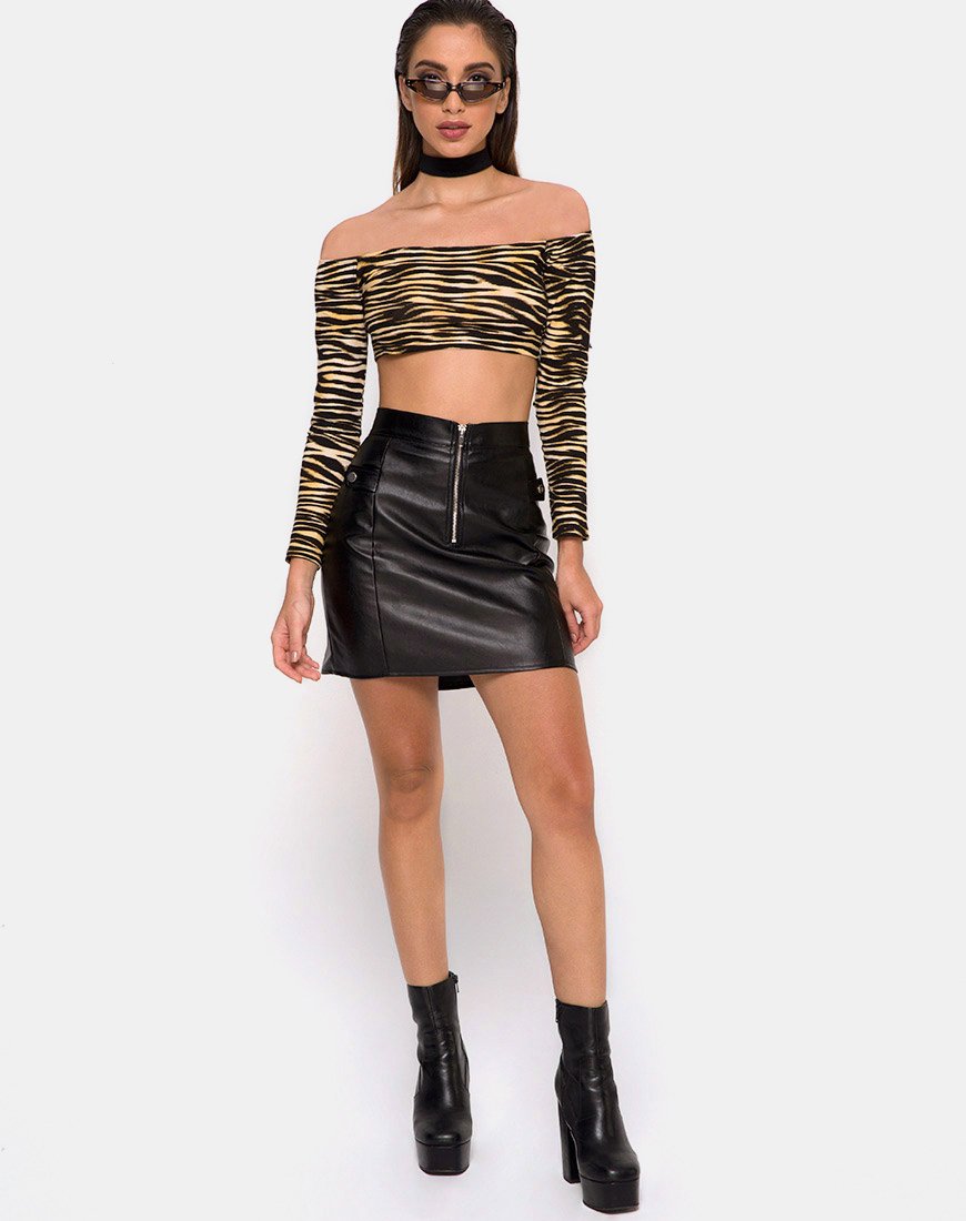 Distinguetevi dalla massa con la stampa della stagione! Il top Coga è caratterizzato da un design off shoulder con taglio corto e maniche lunghe! Può essere abbinato alla vostra mini gonna in pelle vegana preferita e a un paio di stivaletti per un look che vi farà invidiare dalle vostre amiche!