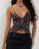 Stampato top a farfalla in rete con spalline sottili spalline regolabili e orlo con spacco a strati con stampa batik botanica marrone. Completate la vestibilità con il nostro Mini in denim a vita bassa.