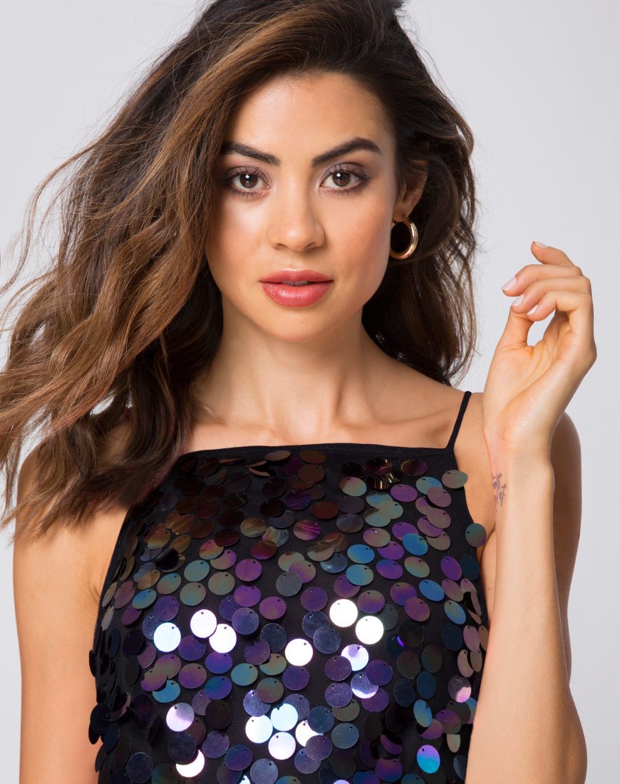 Avete bisogno di uno show stopper definitivo? Con l'abito Corine sarete pronte per l'ingresso in scena in pochi secondi! Scintillate per tutta la notte con il disco di paillettes opalino, caratterizzato da una lunghezza mini e senza schienale, con spalline e spacco laterale. Da sovrapporre a una t-shirt a rete con le DM per uno stile adatto a tutto l'anno, o con un tacco a spillo per le serate del sabato sera. sabato sera.