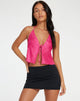 Aggiungete un tocco di rosa al vostro abbigliamento con il top Dama top. In un colore rosa caldo, presenta una scollatura a V aperta sul davanti, spalline sottili sul collo e dettagli da annodare.