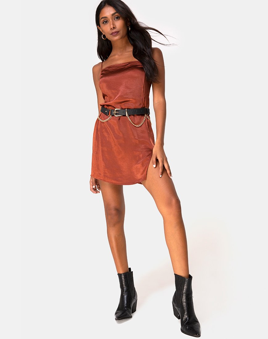 Abito Datista in raso ruggine scuro
