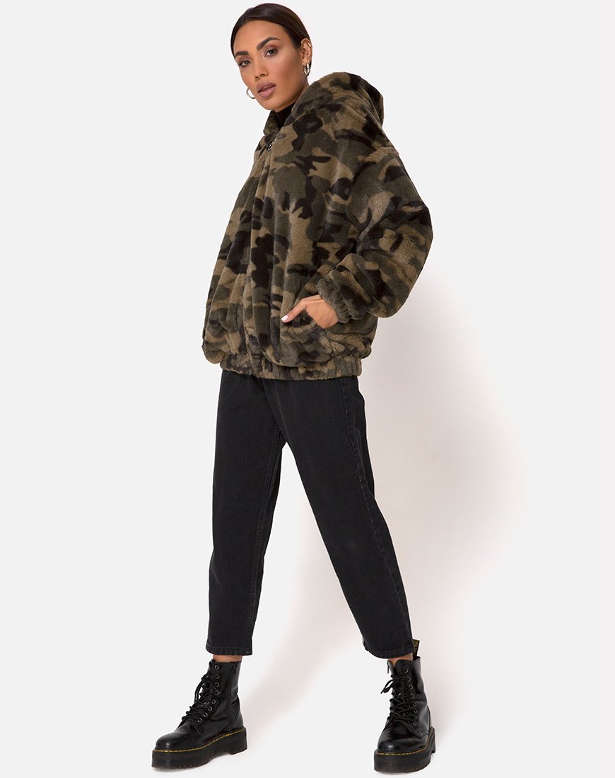 Rimanete al caldo quest'inverno con la giacca oversize Emerson in camo! Caratterizzata da tessuto felpato con fantasia camo, maniche scese, zip argentata con o-ring ed elastico in vita. Da abbinare a jeans neri e stivali da motociclista!