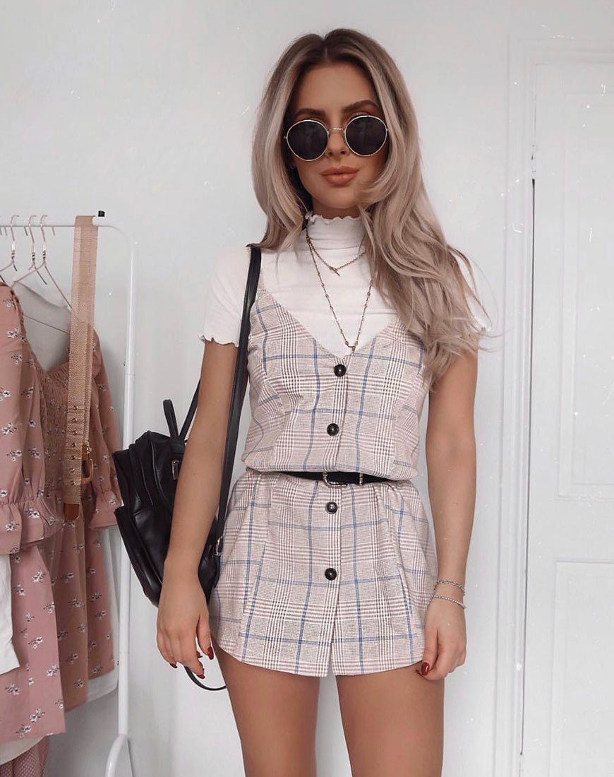 Esana Slip Dress in plaid tonale Almond