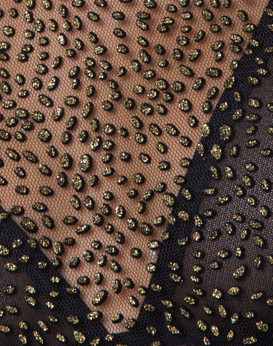 Vestire fuori servizio non è mai stato così facile come con il top Ether. Portate le vibrazioni punk nel vostro abbigliamento quotidiano con la vestibilità boxy over size in rete nera con glitter ricamati in stampa animalier. Da abbinare a una minigonna in vinile, collant a rete e stivali a punta.
