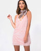 Non c'è nulla di esagerato quando si tratta di fronzoli e lenzuola. È tutto nei dettagli dell'abito Finn, che nel colore rosa zucchero con frange presenta una vestibilità mini ampia, una scollatura profonda e una scollatura bassa con cinturino. Mantenete l'abbinamento minimal e pastello con capelli eleganti.