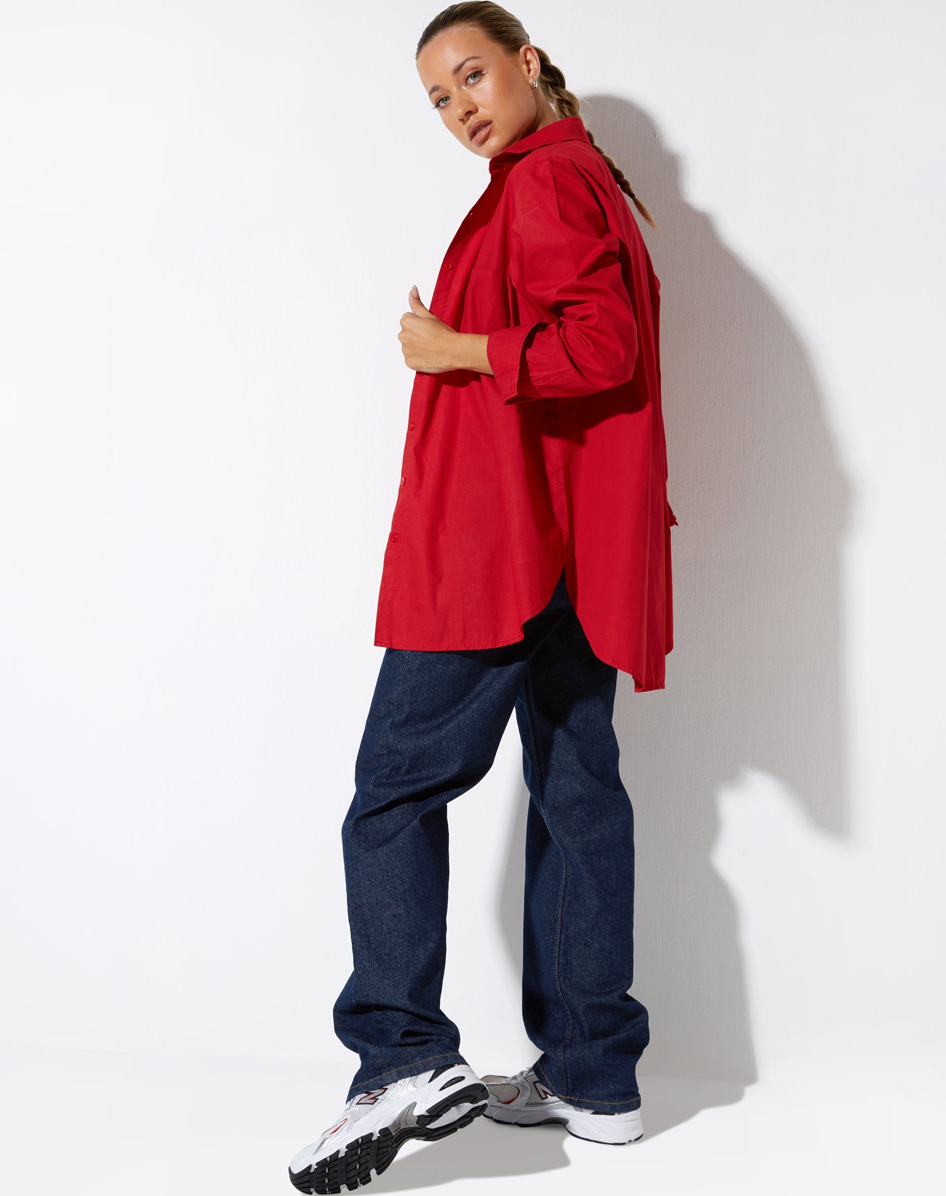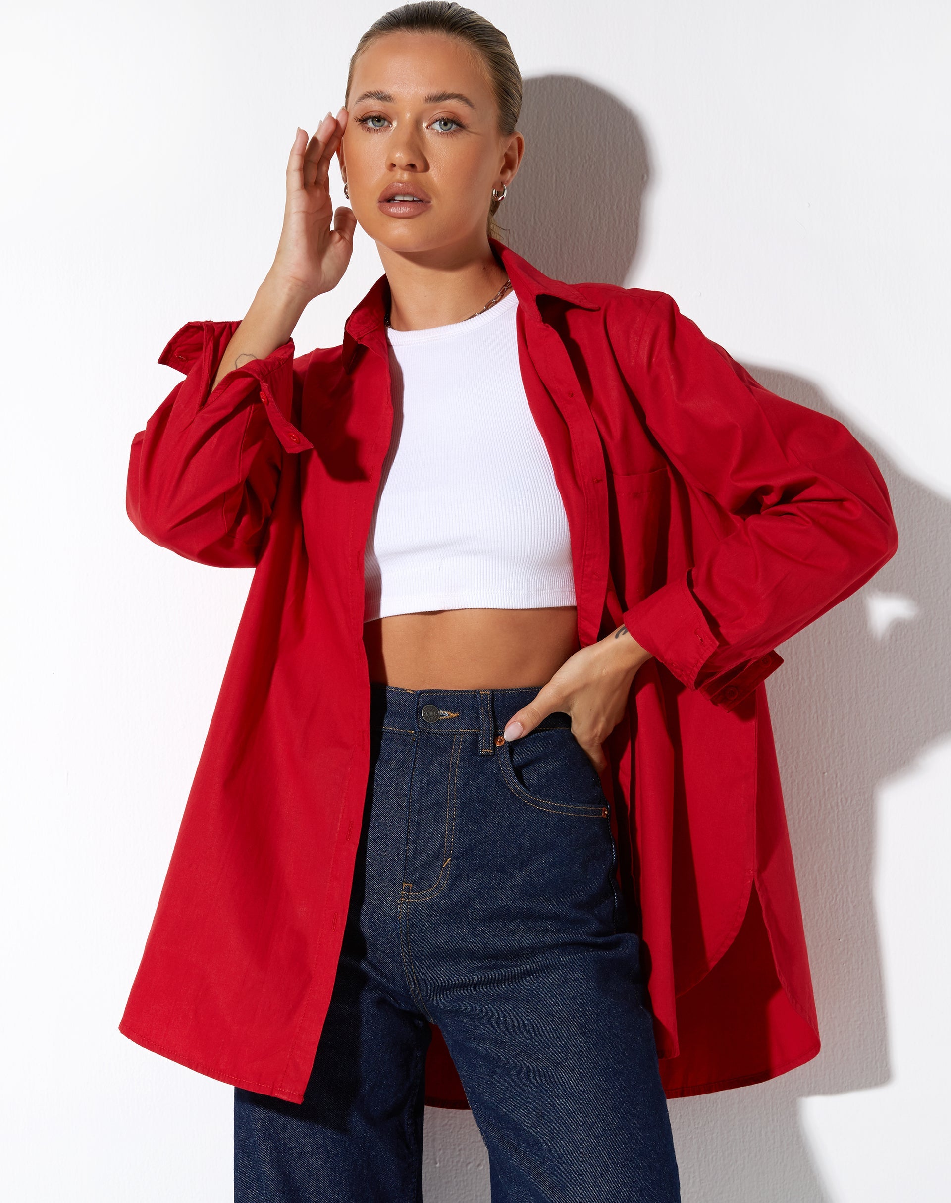 Il Gane camicia aggiungerà un tocco di colore al vostro look. Caratterizzata da una vestibilità oversize, maniche lunghe, maniche lunghe, abbottonatura sul davanti e scollatura con colletto in un colore rosso corsa. Indossatela aperta su un crop bianco di base e abbinatela con i nostri Parallel in lavaggio blu.