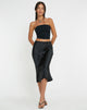 Fate girare la testa con la nostra gonna Goya gonna. In nero, ha un design a vita alta, vestibilità midi e dettagli a balze in finitura satinata. Completate questo look chic con la nostra fascia Shae in nero.