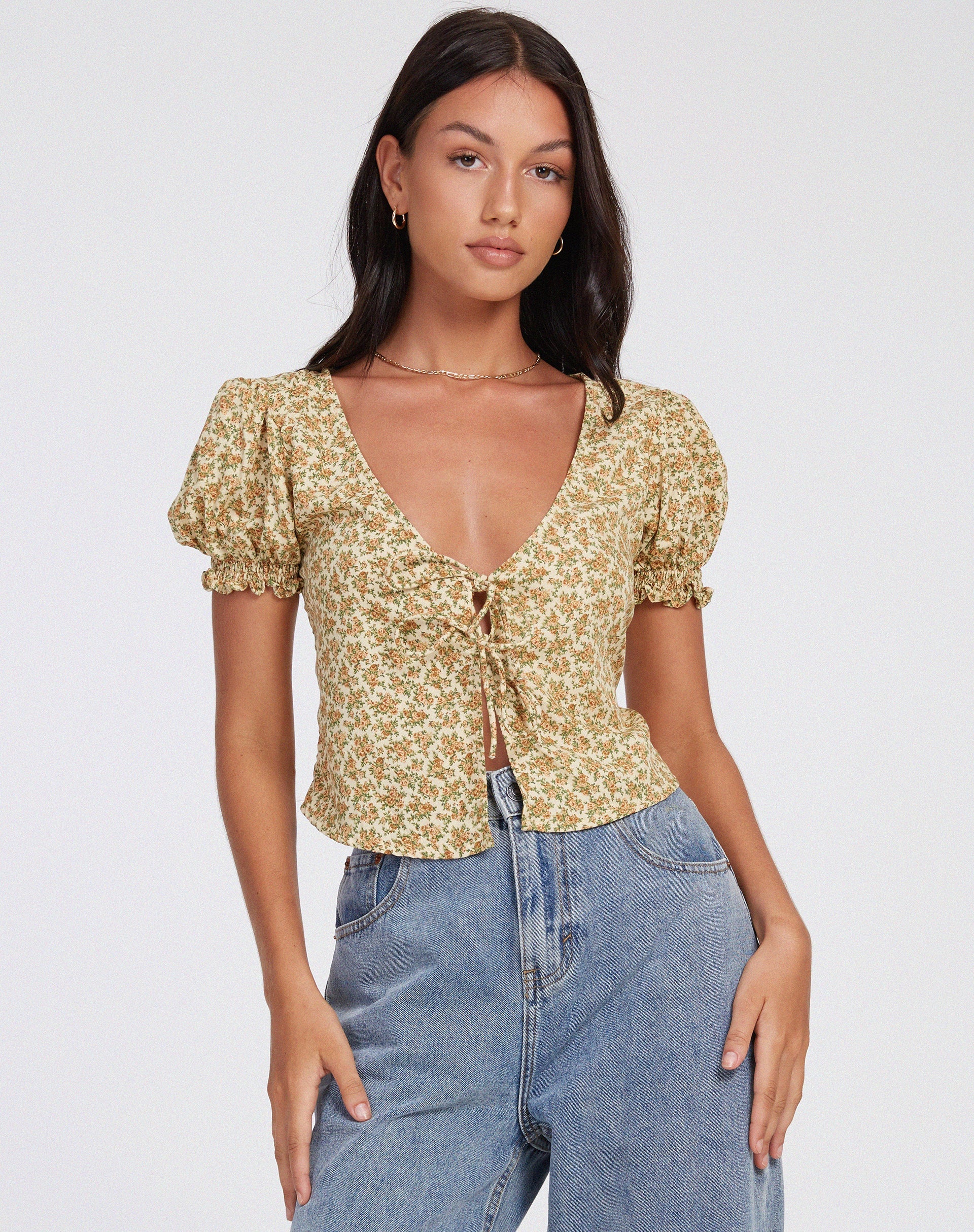 Elevate il vostro stile estivo con il cardiato Hindia cardi. In una stampa floreale giallo chiaro giallo chiaroè caratterizzato da maniche corte a sbuffo, scollatura profonda e dettagli da annodare. Da abbinare con il Parallel jeans.