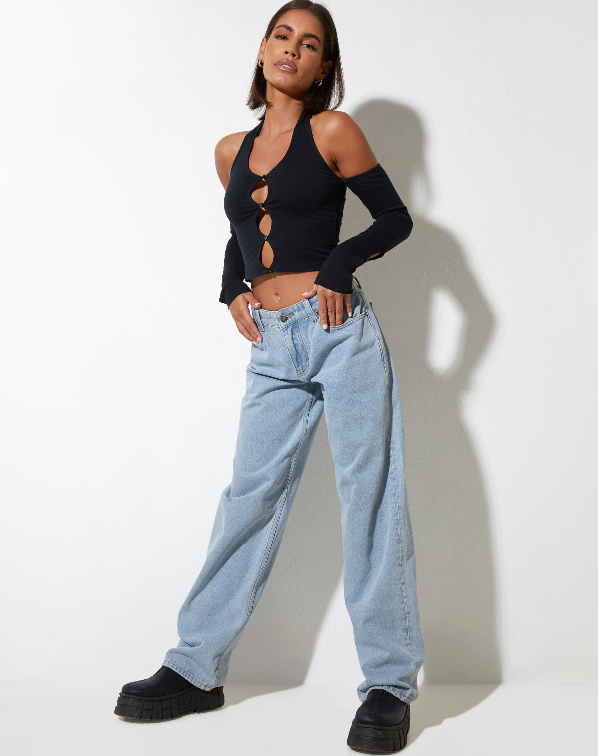 Il nostro Jayne top è il raccolto perfetto per tutti i vostri eventi. Caratterizzato da un design cropped scollatura a pallina, dettagli tagliati sul davanti, spalle scoperte e maniche lunghe. Da abbinare ai nostri jeans Parallel a vita bassa in blu chiaro.