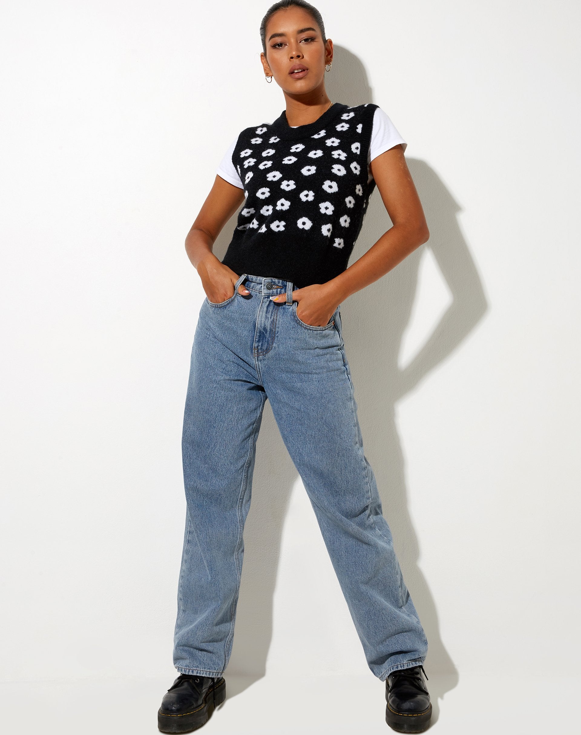 Date un tocco in più alla vostra maglieria con il nostro gilet Joker top. Caratterizzato da una vestibilità senza maniche con scollatura a girocollo e stampa di margherite in bianco e nero. Da abbinare a una t-shirt bianca di base e a un paio di jeans chiari. jeans per completare il look.