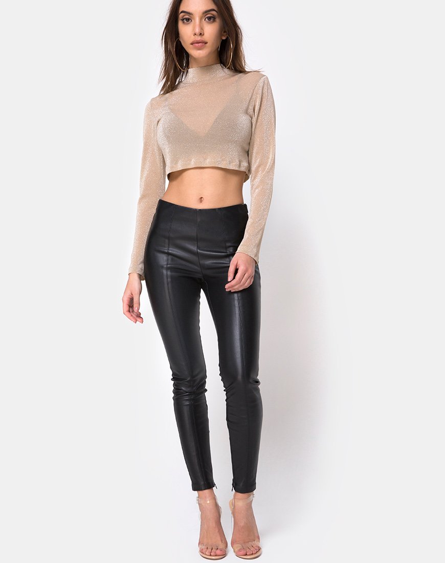Top Aumentate il vostro gioco della nuova stagione con il Lara. Elegante e seducente, sarà un ottimo strato di base. In una tonalità di rete trasparente e abbronzata, presenta una vestibilità aderente con maniche lunghe e collo alto. Indossatela con un pantalone in pelle e un tacco slanciato.