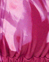 Il modello Laufey presenta un top bikini a collo alto con un dettaglio di torsione al centro della parte anteriore e lacci regolabili sul collo e sulla schiena, con una stampa a turbine rosa tonale. Realizzato in spandex elasticizzato da materiali riciclati. Da abbinare agli slip Nakeela coordinati.
