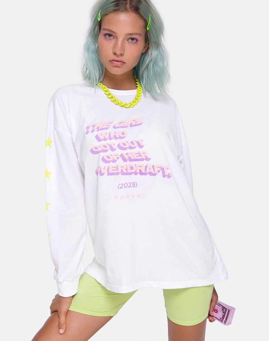 Maglietta a maniche lunghe Lottie in bianco con testo overdraft ...