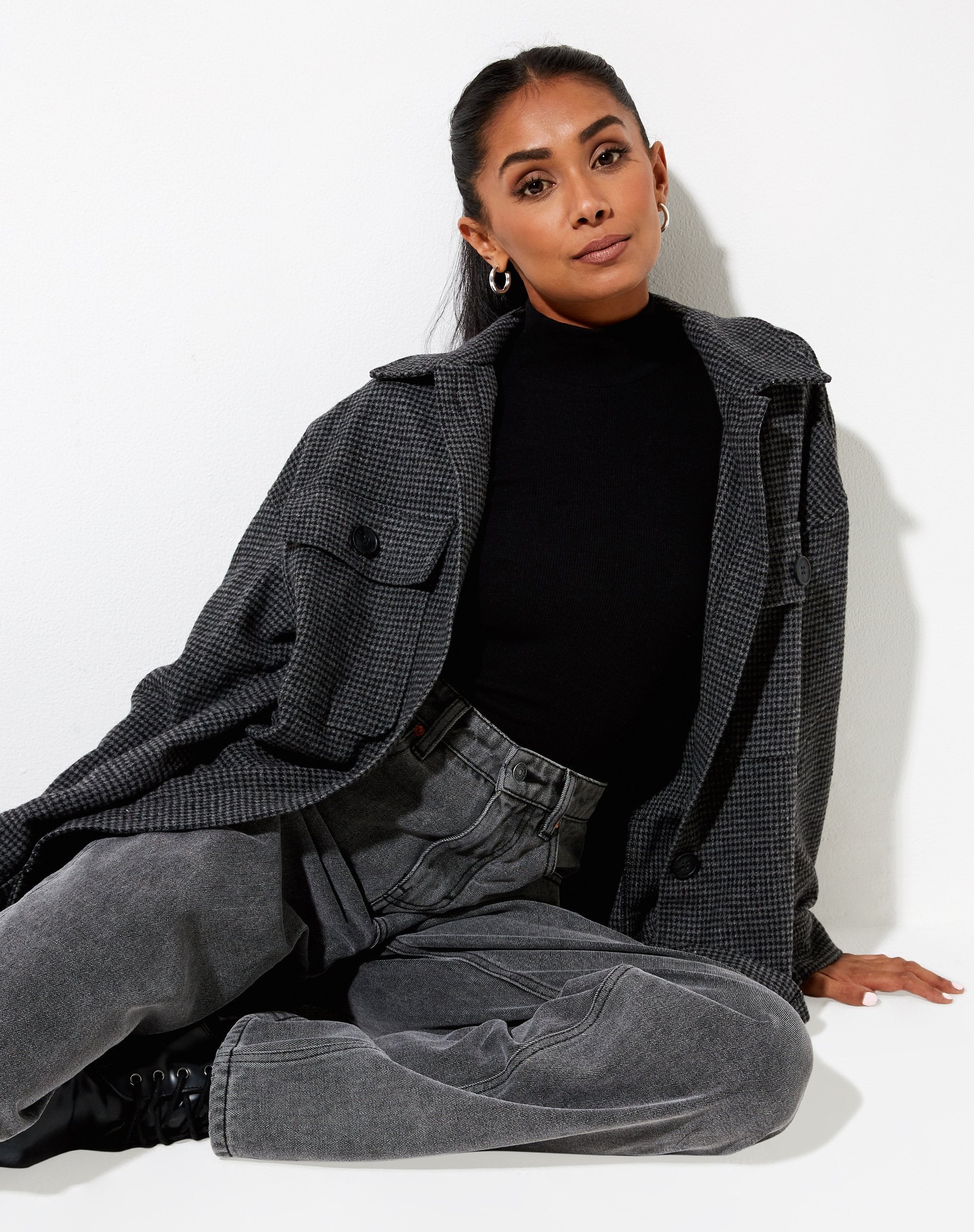 Per un look quotidiano di basso profilo, optate per la camicia Marcel camicia. Perfetta per una stratificazione transitoria, ha una vestibilità oversize con maniche lunghe, colletto a revers e dettagli delle tasche, in una stampa pied-de-poule nera. Indossatela con i pantaloni pantaloni Zova con uno stivale grosso.