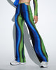MOTEL X OLIVIA NEILL Pantaloni Mares Flare in verde e blu solarizzato
