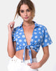 Sognate un cielo azzurro? Anche noi! Fate spazio al sole estivo con la stampa a margherite! Il crop Marleigh presenta una scollatura a V con nodo sul davanti e colletto con risvolto. Per uno stile da sogno, completate il look con la gonna Liesk e la borsa di paglia.