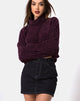 La mini gonna broomy, ora in nero, è caratterizzata da una vita alta e da un mini vita alta, con passanti per la cintura, tasche e cuciture bianche. Diventate chic dalla testa ai piedi con il maglione Evie e i capelli raccolti per uno stile fresco.