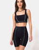 Il nuovo è qui, il nuovo è adesso. Anticipate la tendenza con il pantaloncino Neho, in nero elasticizzato con vita alta, pantaloncino lungo e dettagli in piping bianco. Aggiungete il Shano crop per un'atmosfera vibrazioni street.