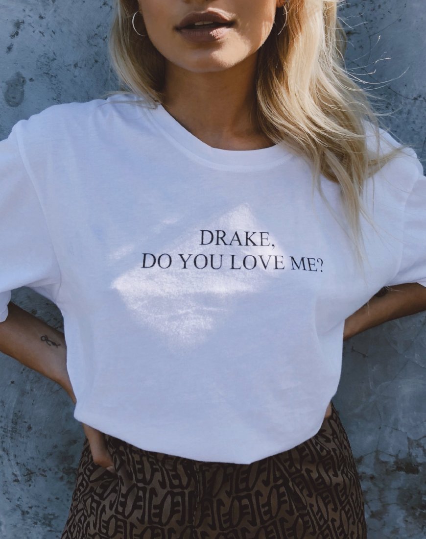 Date una svolta al vostro gioco di base con la nostra t-shirt basic oversize! Con una vestibilità oversize, la t-shirt presenta la scritta "Drake Do You Love Me?", ma di sicuro vi piacerà di più! Abbinatela a dei pantaloni a vita alta per un'atmosfera rilassata!