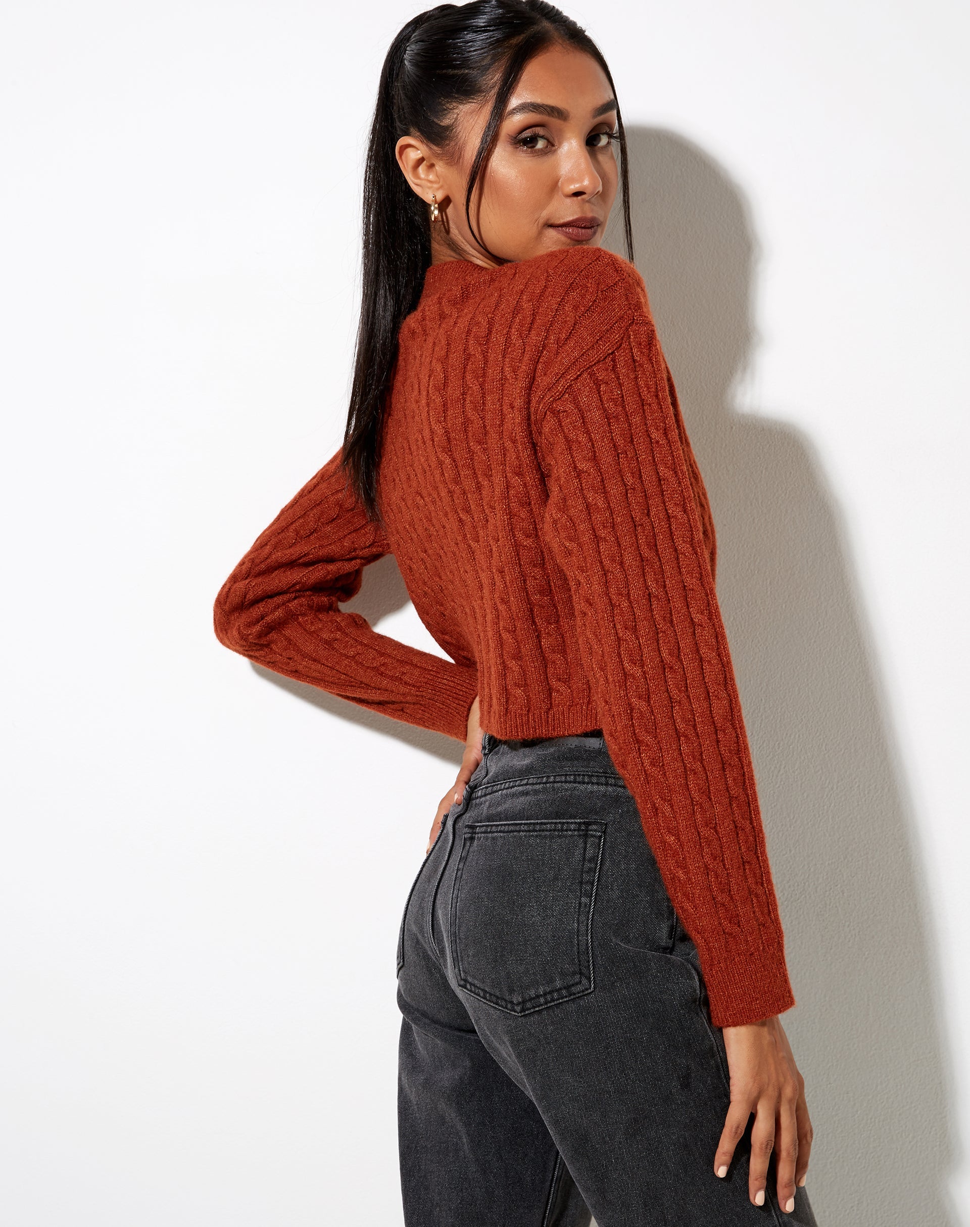 Quando si tratta di maglieriapiù è grossa, meglio è! In una maglia a cavi color ruggine, il cardiato Parry cardi è caratterizzato da scollo a giro, maniche lunghe e bottoni sul davanti. Indossatelo con i jeans jeans Jess e River.