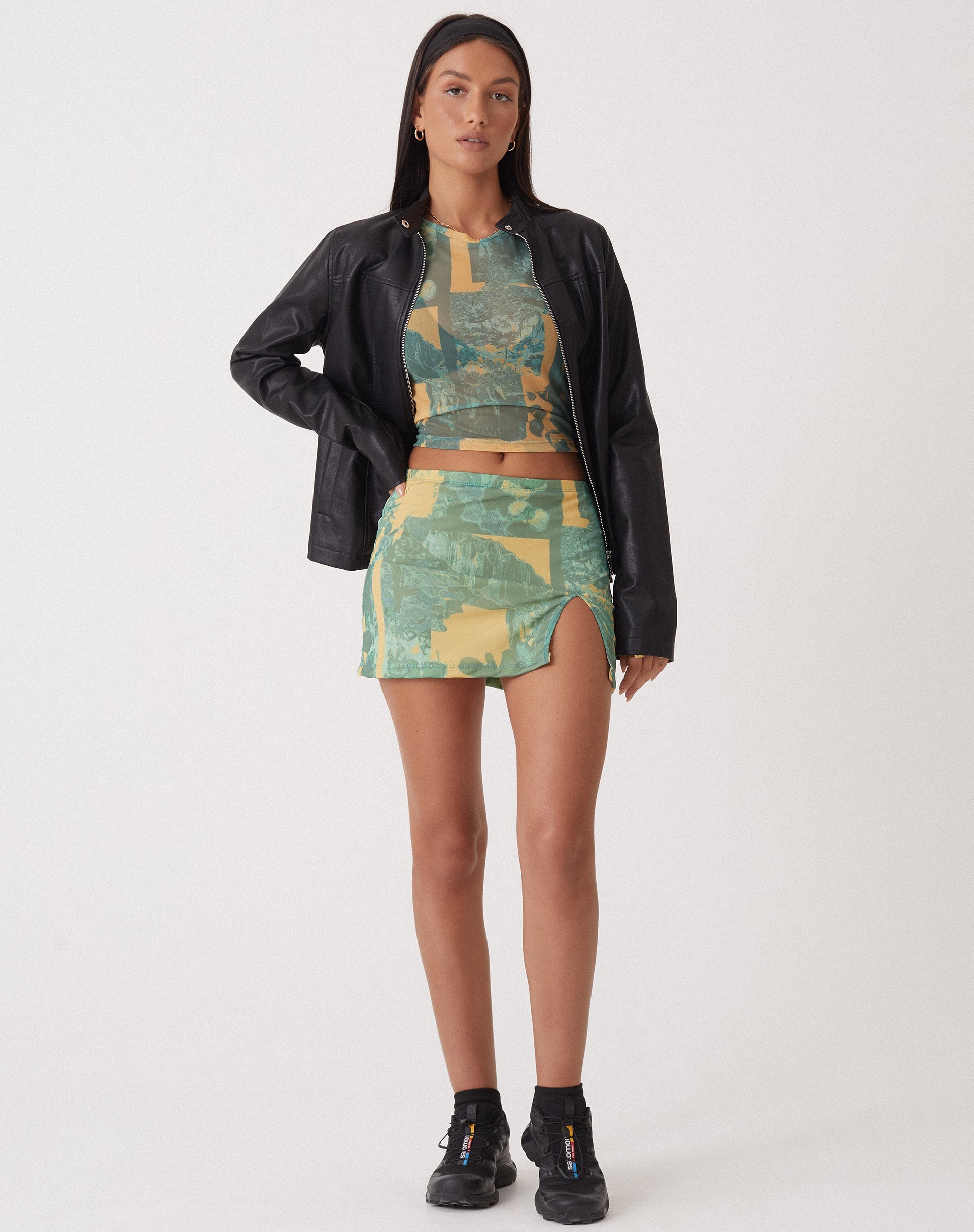Preparatevi per ogni occasione con la gonna Pelma gonna in collage floreale verde ombra. Caratterizzata da una vita alta, vestibilità mini e spacco laterale con una sottile chiusura a zip sul retro. Abbinatela al Top Zora in collage floreale verde ombra