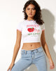Aggiornate le vostre magliette di tutti i giorni tee con il nostro Ringer. Caratterizzata da un taglio corto con maniche corte e scollatura a girocollo, in colore avorio, con bordi rosa e un design fruttato. Completate il look con il Jean sfrangiato in lavaggio chiaro.