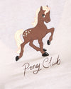 Date un tocco di classe al vostro look quotidiano con la nostra t-shirt Ringer tee. Caratterizzata da un taglio aderente, maniche corte e scollatura a girocollo, è di colore bianco con bordi marrone cacao e disegno "Pony Club". Completate il look con i nostri Parallel in corda color cioccolato scuro.