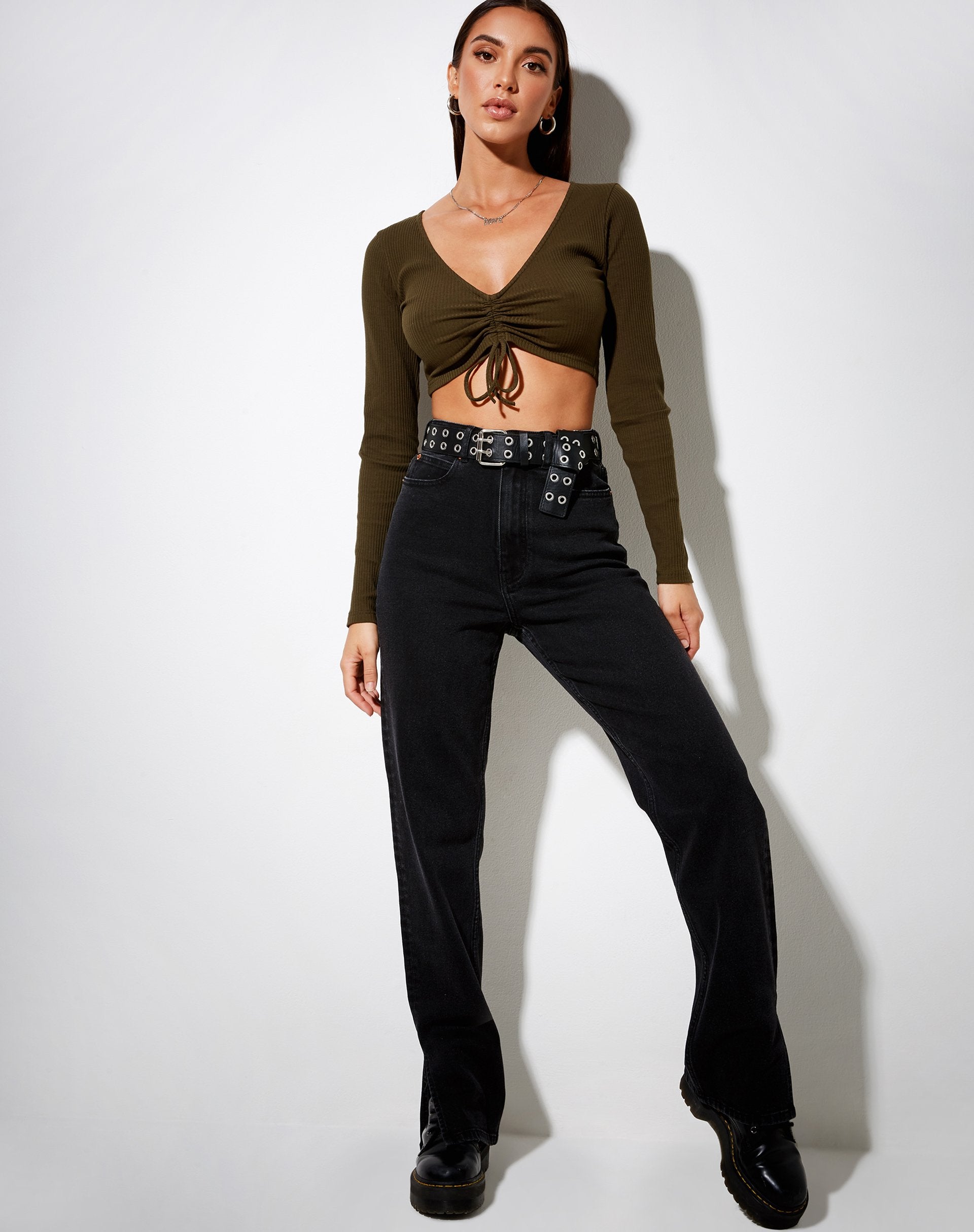 Di base per natura, il top Rivelo top è il complemento perfetto per ogni outfit. In una tonalità cioccolato a costine, presenta maniche lunghe, scollo a V e taglio corto con dettagli increspati. Abbinatelo con i vostri denim per uno stile quotidiano.
