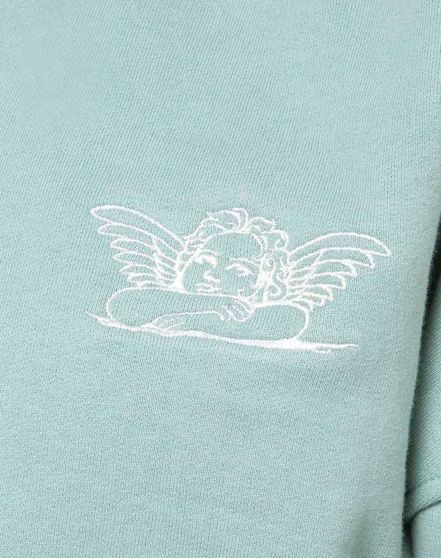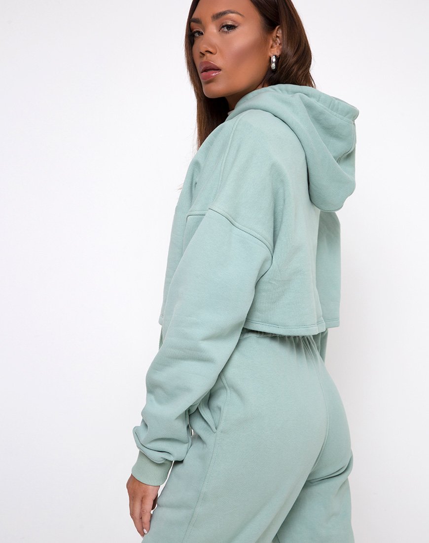 Non si può sbagliare con una felpa con cappuccio quindi assicuratevi che il vostro guardaroba sia benedetto da questa! La felpa con cappuccio roky è disponibile in un colore verde mare chiaro, ricamo Angel Angel e maniche lunghe. Abbinatela alla tuta con cappuccio verde mare abbinata. joggers basta per un perfetto look casual. co ordinamento casual perfetto.