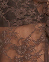 Cardigan cropped in pizzo trasparente a maniche lunghe cardigan in marrone. Caratterizzato da scollo a V con chiusura a gancetto e orlo a balze. Completate la vestibilità con i nostri Ajeng gonna.