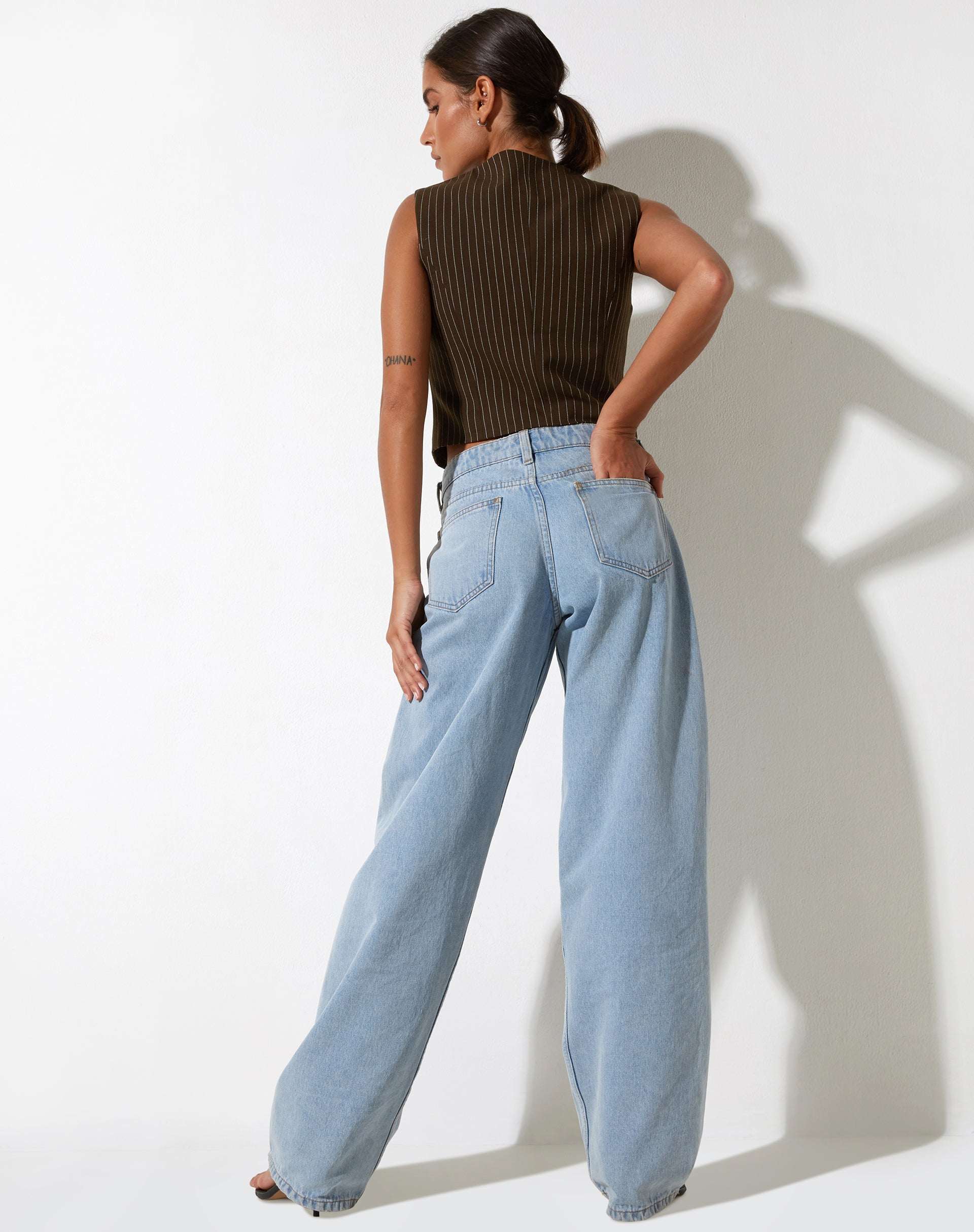 Date una svolta al vostro look con il nostro Safar. In marrone gessato, questo gilet è senza maniche, con scollo a V e chiusura a bottoni. Completate il vostro look con i jeans Parallel a vita bassa in blu chiaro.