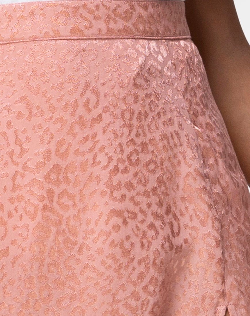 Gonna Saika in raso ghepardo rosa polvere