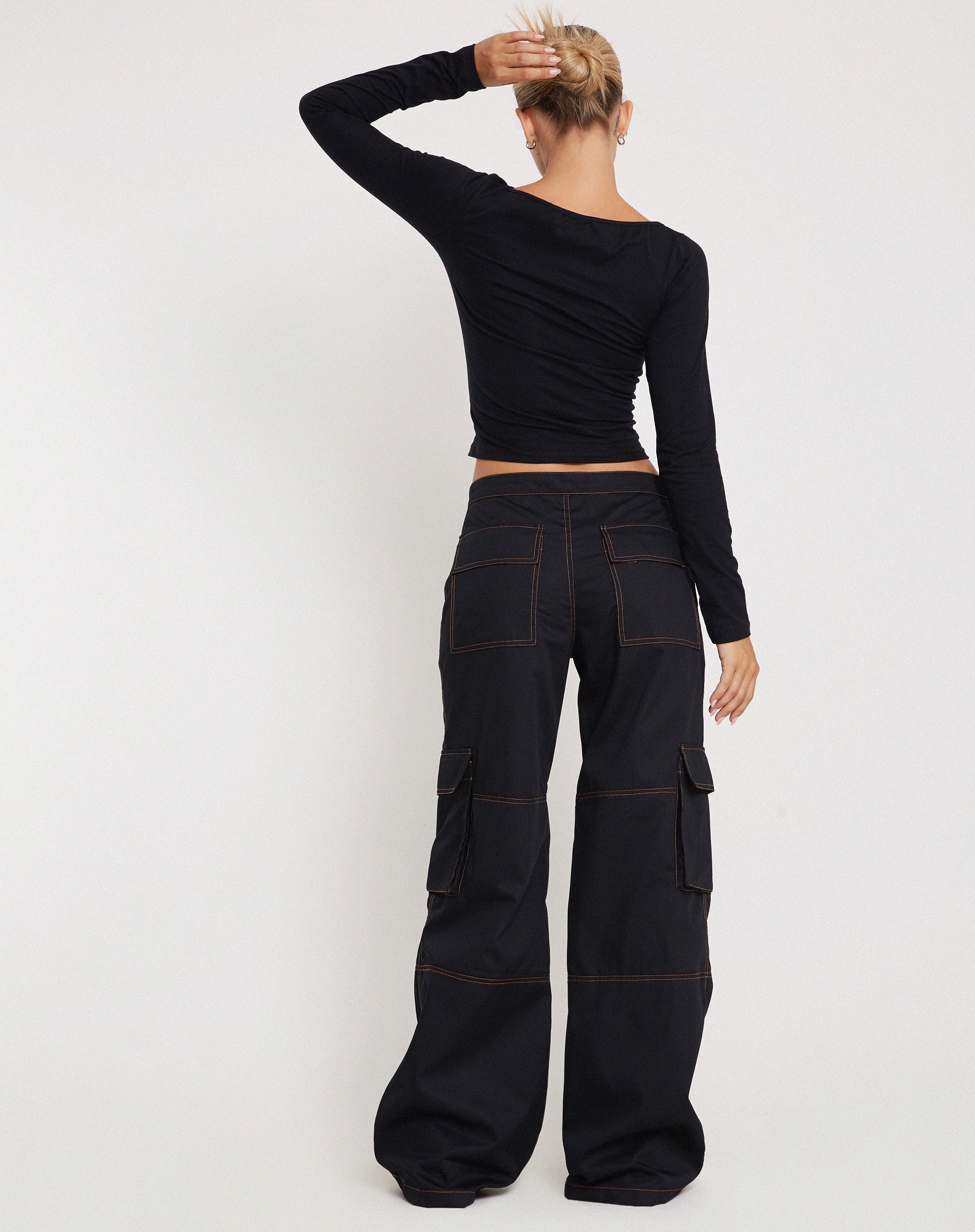 Pantaloni Cargo Saul a gamba larga in nero con cuciture arancioni
