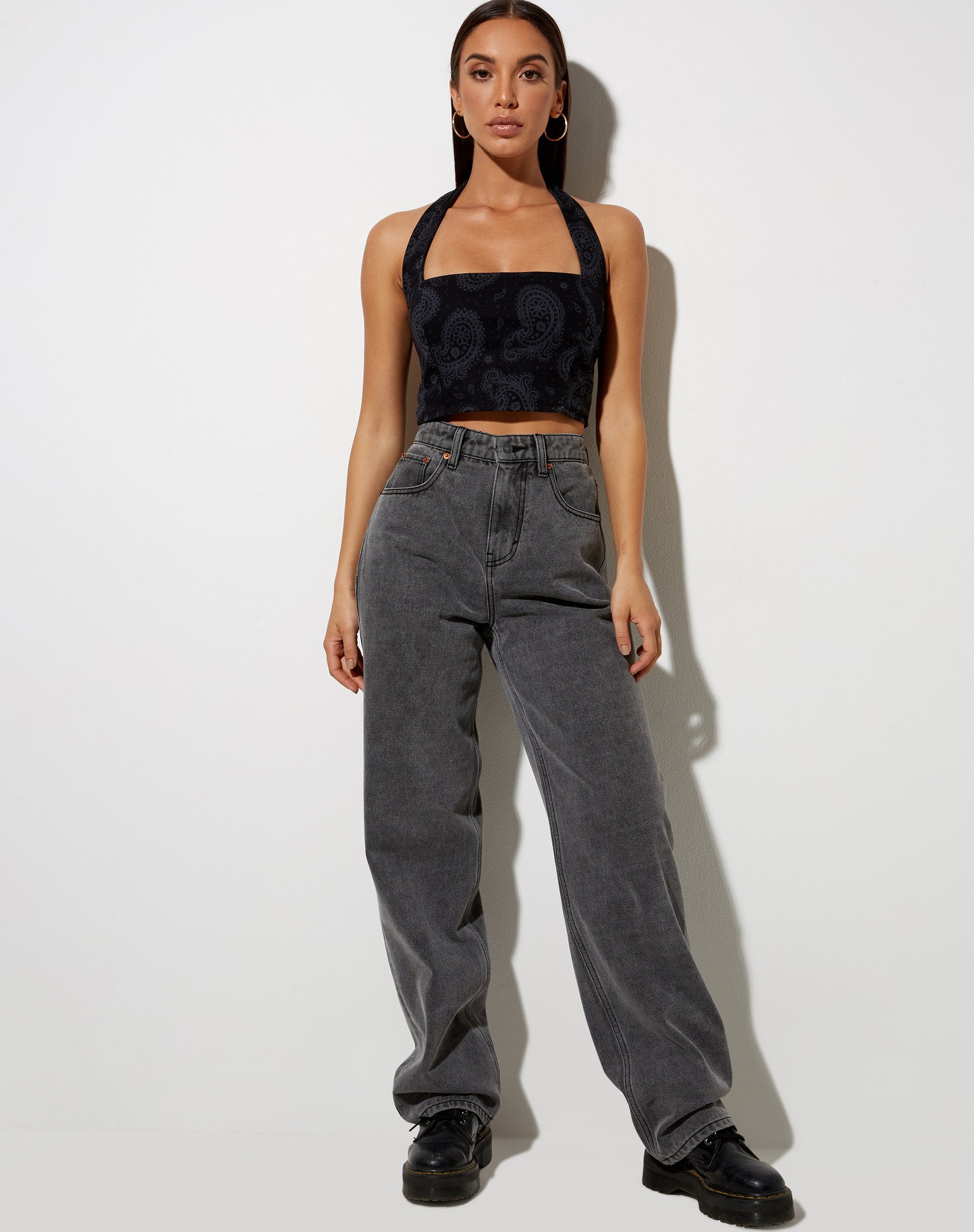 Il nostro Sisia top porterà un po' di stile rockabilly anni '50 nel vostro guardaroba. Con una stampa paisley nera, è caratterizzato da una vestibilità aderente e da spalline a collo alto. Abbinatelo ai nostri jeans Parallel grigi o ai nostri capi coordinati. Sheny per un coordinato coordinato look.