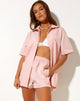 Per uno stile rilassato, la camicia Smita camicia è lo stile che fa per voi. In una tonalità rosa, presenta uno slogan "take it easy" con vestibilità oversize boxy, maniche corte, bottoni sul davanti e colletto con risvolto. Completate il set con lo short Lala.