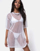 Abbigliamento da spiaggia ma che sia impertinente. Il nostro bestseller abito tee sunny kiss ma con un'evidente paillettes con un tocco di paillettes. È il compagno perfetto per il bikini, con la sua vestibilità oversize e l'estetica a rete. Indossatelo a un rave con scarpe da ginnastica e pantaloncini da ciclista, o in discoteca con un abito bianco con spalline. abito bianco con spalline e tacchi.