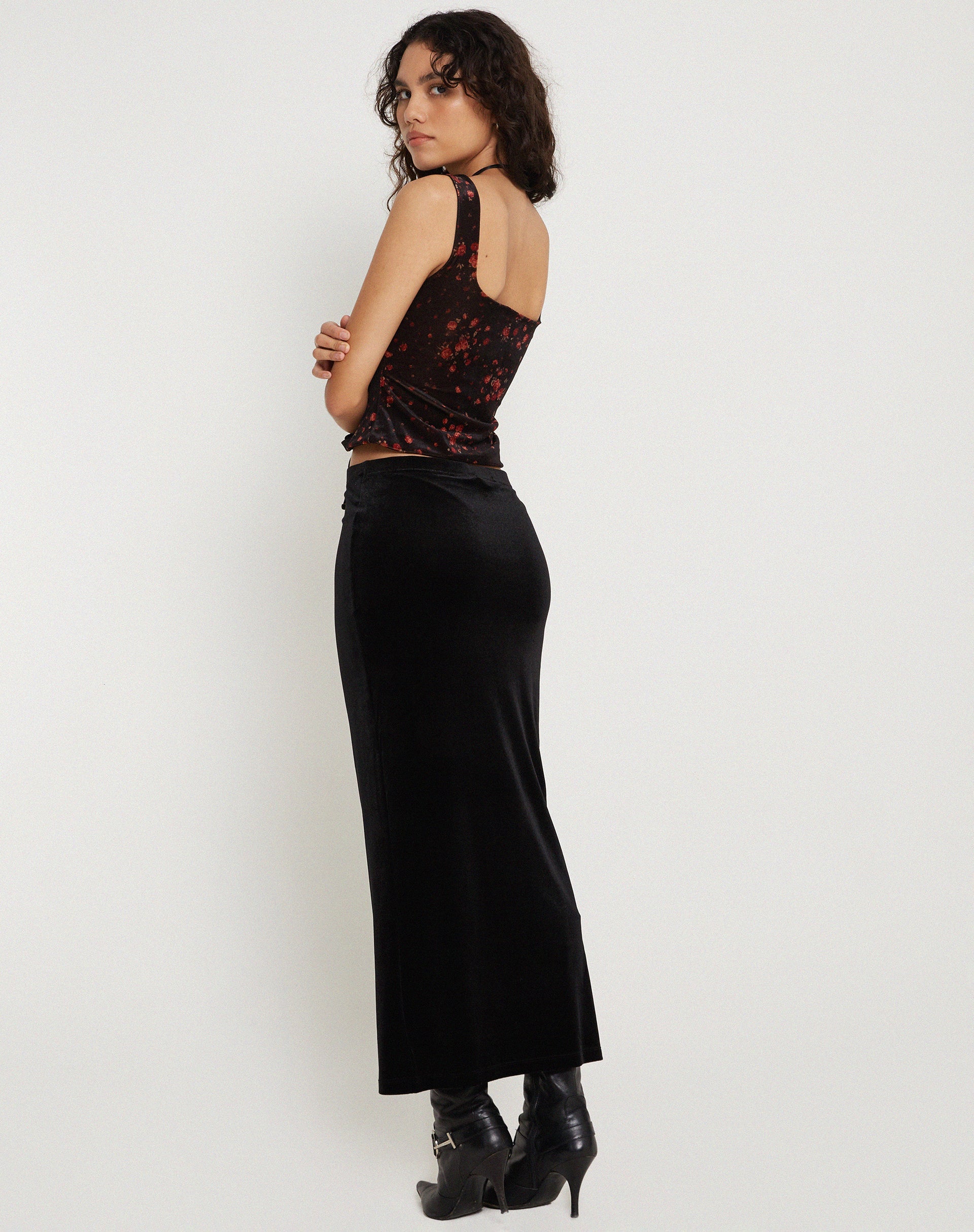 Collo quadrato ritagliato corsetto gilet stile top con allacciatura frontale in velluto a grappolo rosa. Ci piace abbinarlo al nostro Tulus con la nostra gonna Tulus.
