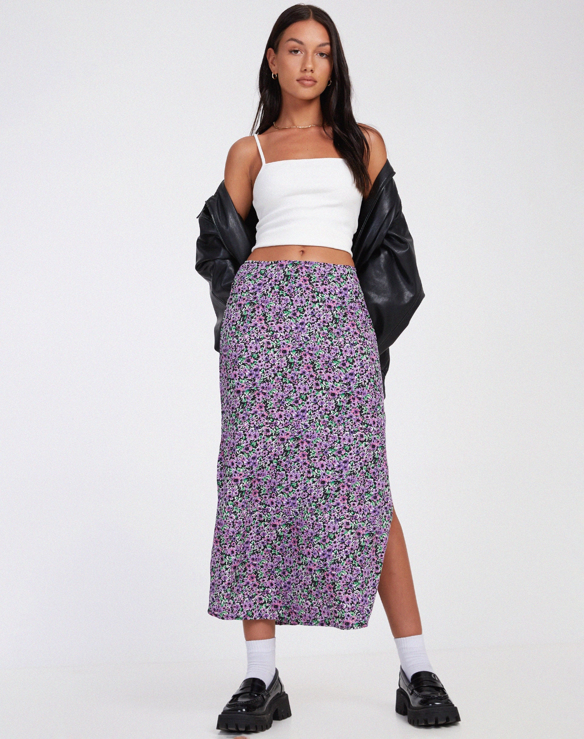 I fiori sono per sempre il nostro umore e possono coprire qualsiasi occasione! La nostra Tindra gonna è caratterizzata da una vestibilità a vita alta, midi lunghezza midi e spacco laterale con stampa di fiori lilla lilla. Da abbinare al nostro top Keenan in bianco.