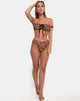 È tempo di bagnarsi e scatenarsi! Il bikini Val è un capo essenziale se avete intenzione di scatenarvi quest'estate. Nel nostro leopardo bruciato, questi slip sono caratterizzati da una vita alta e da una gamba altissima. Mantenete un look chic e completate il tutto con il top del bikini Val, occhiali da sole oversize e un cocktail in mano.