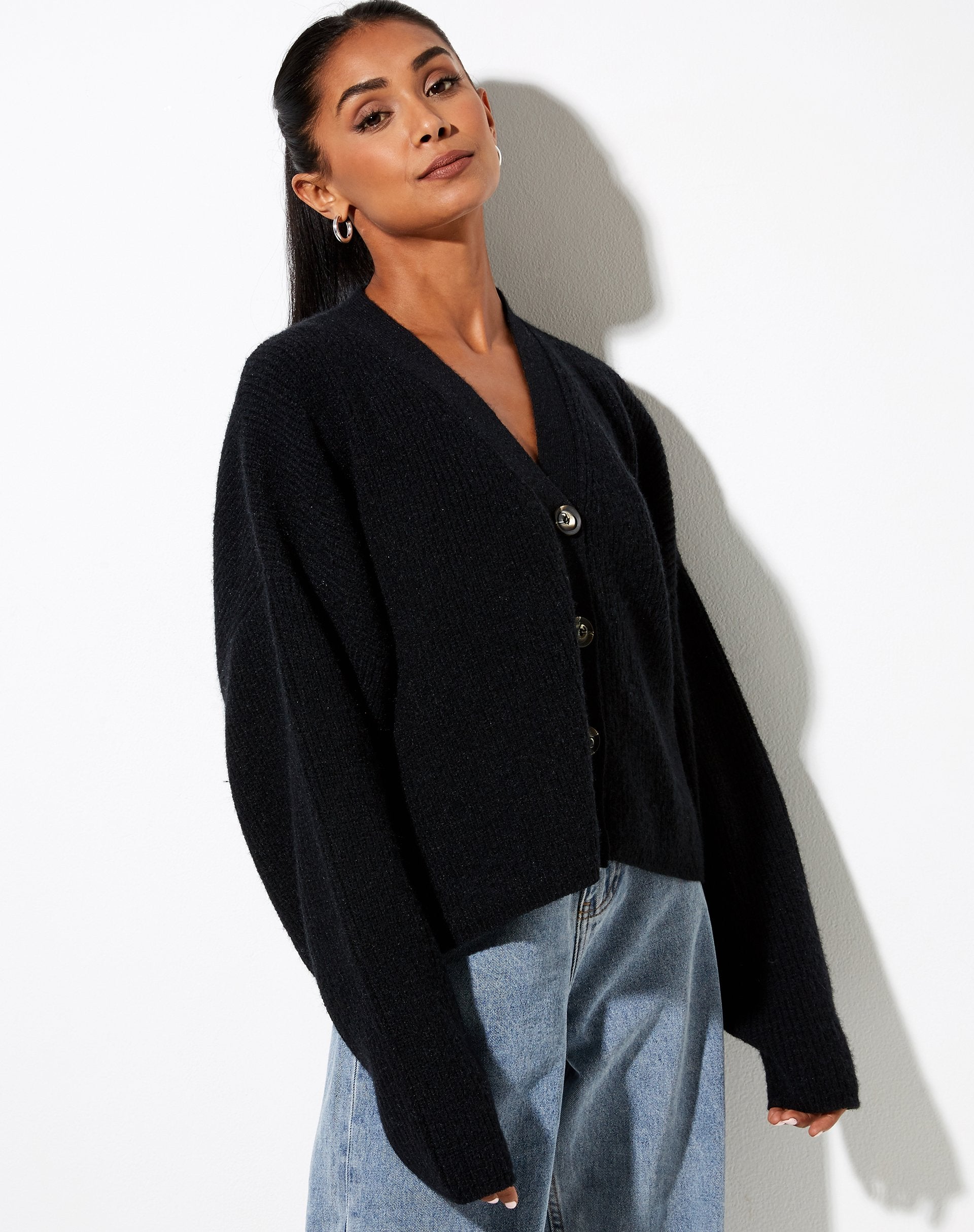 Fresco ma sempre accogliente. Il nostro cardi Wallace è il perfetto maglia perfetta per la nuova stagione. In maglia nera, presenta una vestibilità oversize con maniche lunghe, scollo a V e bottoni sul davanti. Indossatelo come top con i bottoni alzati o come strato sopra una t-shirt.