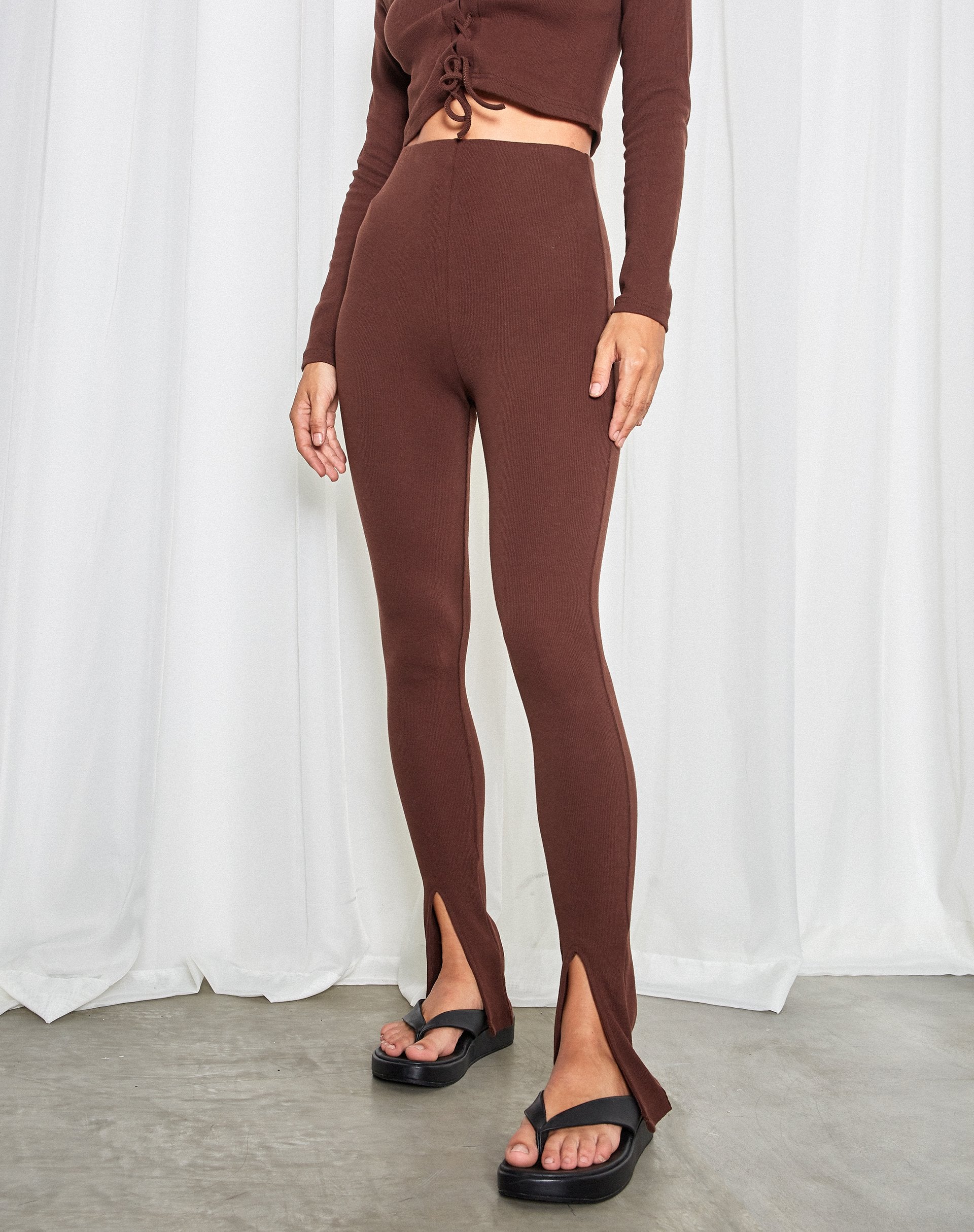 Per un aggiornamento semplice dei vostri pantaloni, optate per il pantalone Xaya Xaya. In marrone a coste, hanno vita alta, gamba sottile e orlo spaccato. Per un look casual, abbinateli al top top Delona.